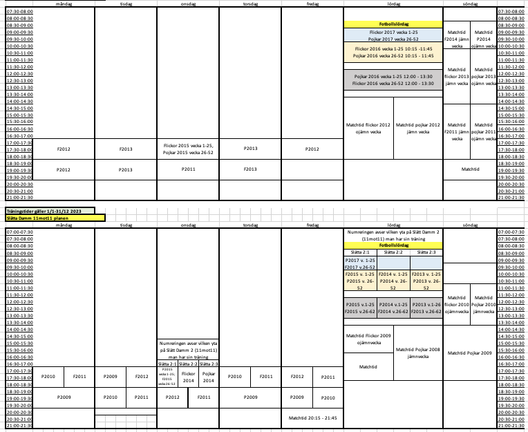 Lördag 14:00 - 18:00 och söndag 08:30 - 18:30, klicka här för att få en bättre bild på tränings- och träningsmatchtiderna.