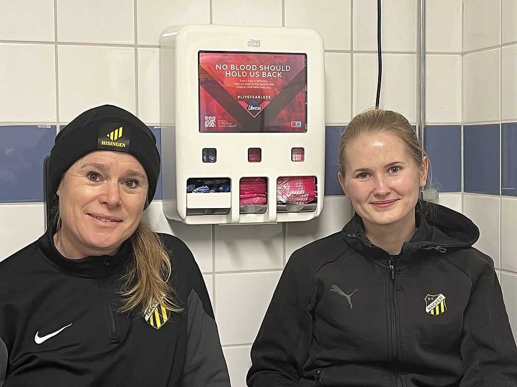 Tillsammans med Gothiacups partner Libresse har vi satt upp en dispenser med bindor, trosskydd och tamponger i tvättstugan som man kan hämta vid behov.